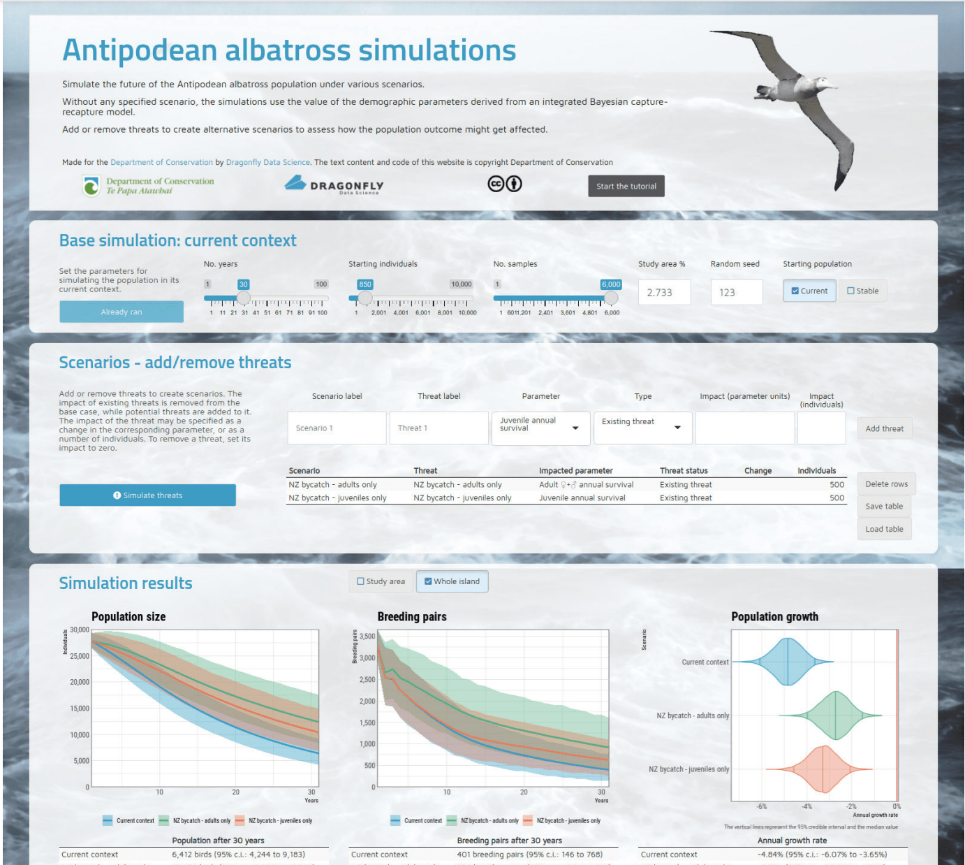 Action to halt the estimated annual 5 percent decline of the Antipodean albatross population is essential. The integrated population model and app we created allow stakeholders to explore the effects of different threats and management strategies. This is intended to help guide decisions to secure the future of the species.